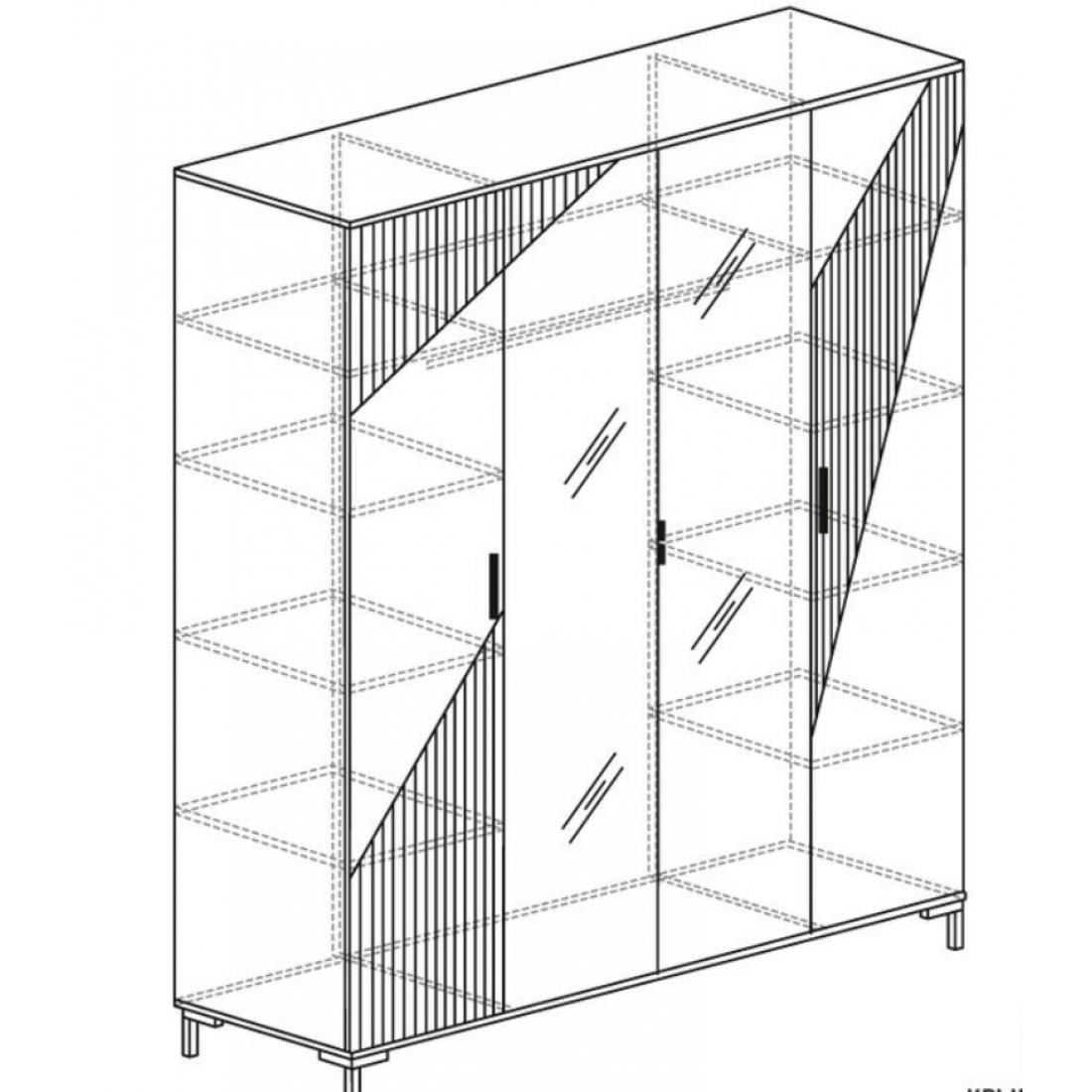 Фасады: МДФ, декор – кашемир серый, патина золото, зеркало с гравировкой