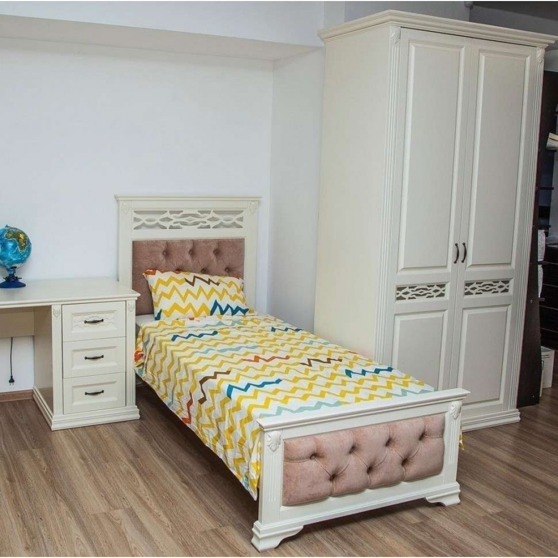 Кровать оснащена ортопедическим основанием для матраса — гнутыми ламелями.