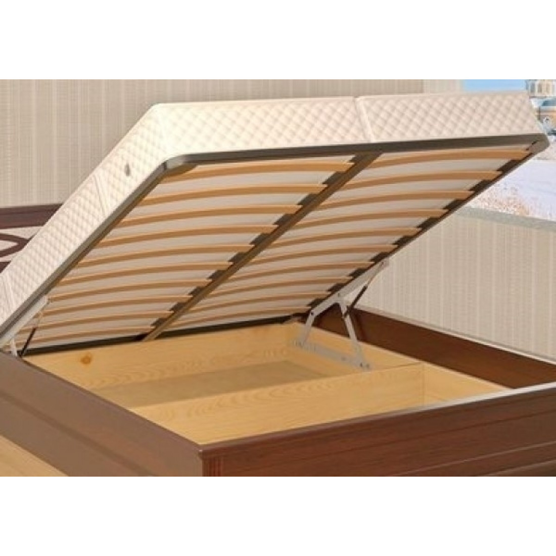 Тахта оснащена ортопедическим основанием для матраса — гнутыми ламелями.