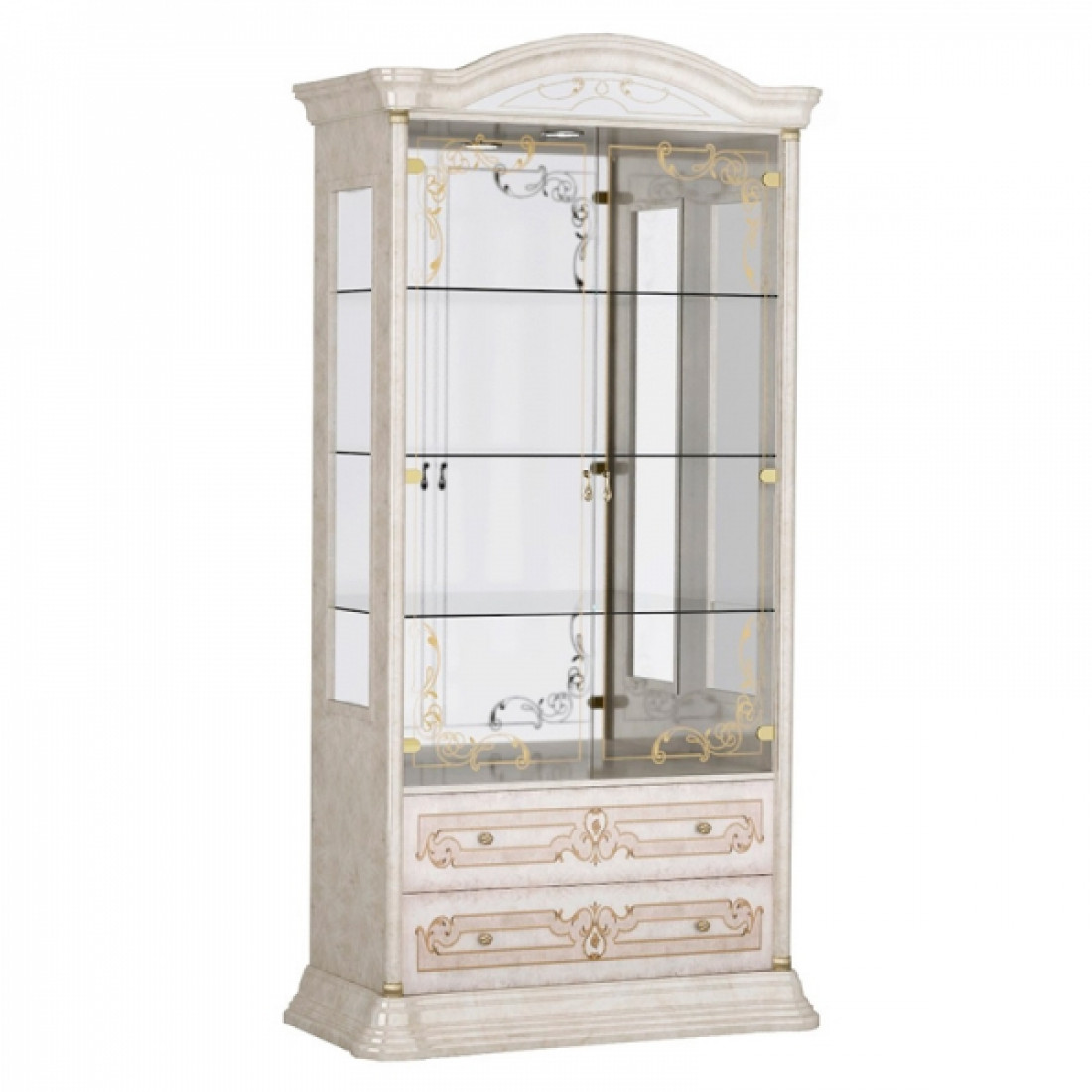 Шкаф-витрина двухдверная Роза (беж) от фабрики ДИА мебель выполнен в классическом стиле. Стеклянные полки и зеркальный корпус придадут чувства легкости и удивят Вас своей вместимостью. Бежевый цвет в сочетании с глянцевым покрытием и золотистым орнаментом придает этой модели изящность. Такой шкаф послужит идеальным дополнением к другим модулям коллекции.