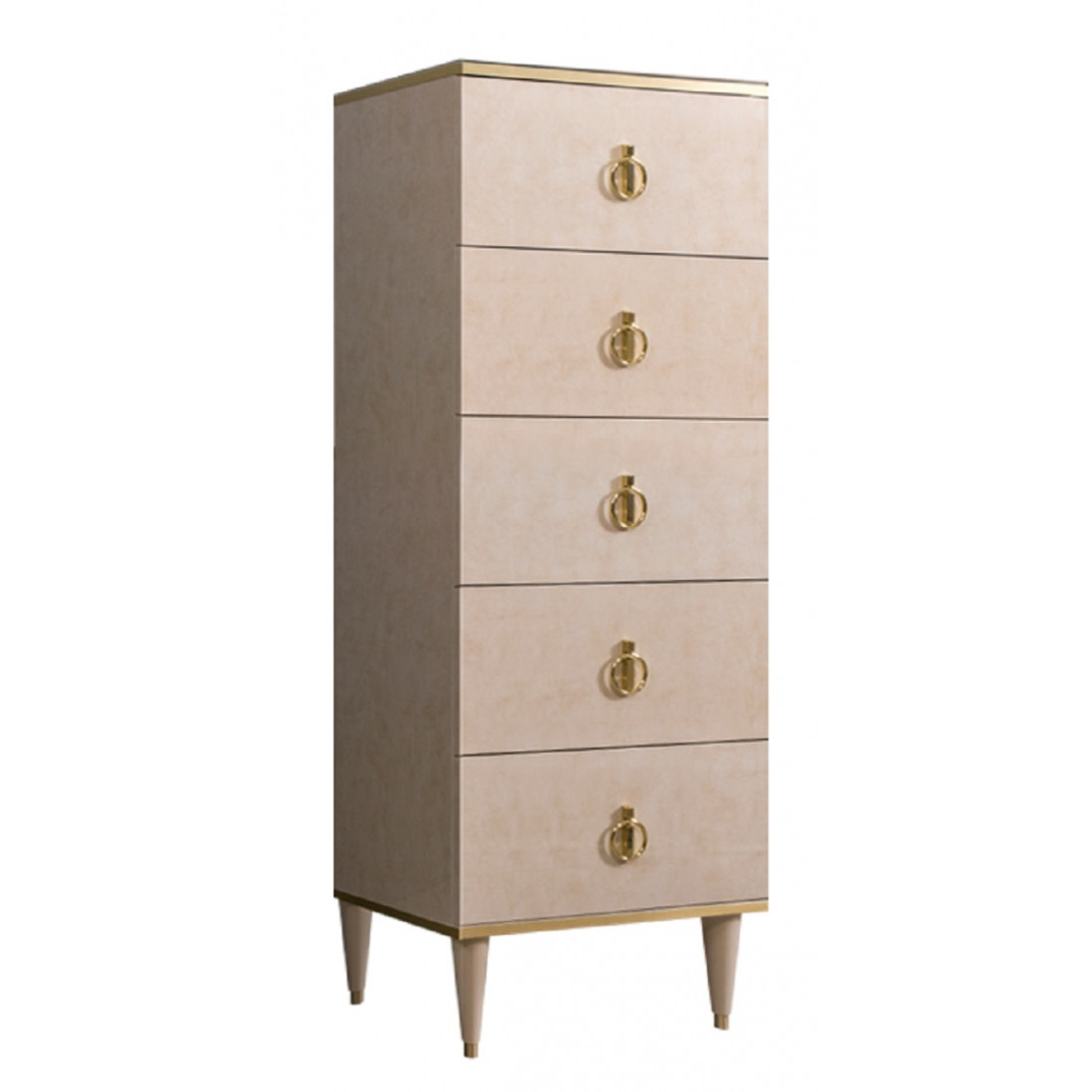 Оригинальным дизайнерским ходом стало решение «поставить» комод для белья Rimini на высокие деревянные ножки с латунными или алюминиевыми наконечниками.