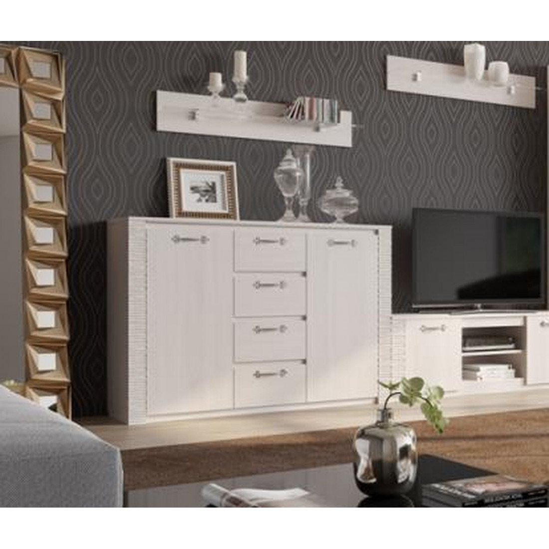 Широкий комод с баром для гостиной Элана, цвет Бодега белая