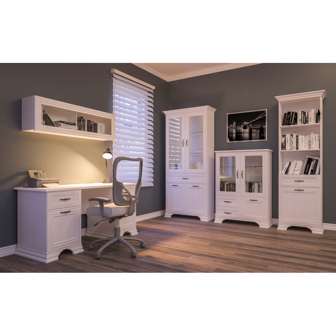 Мебель для кабинета Юнона от фабрики Мебель-Неман - это новинка 2019 года в классическом стиле с отделкой структурной фактуры, обрамленная рамочным фасадом, где металлические ручки выгодно подчёркивают стиль и изящество, всегда актуальна и востребована. Полки у шкафа-витрины и тумбы - стеклянные.