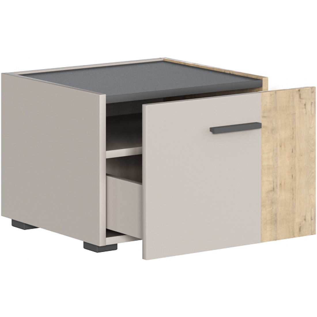 •  Тумба с выдвижным ящиком, за фасадом ящика присутствует ниша;
