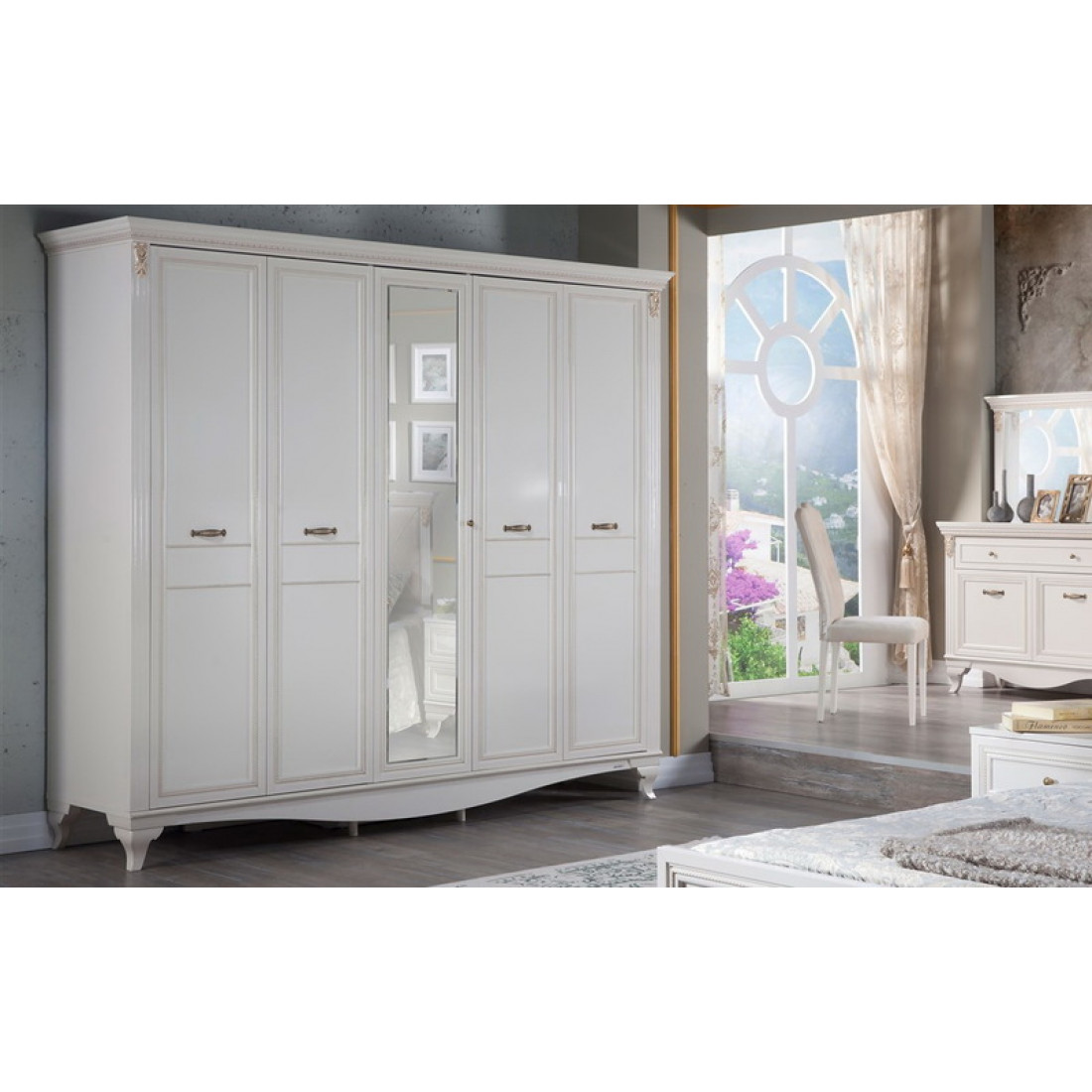 Пятидверный шкаф Карат KART-33 очень удобен и функционален, подходит для размещения большого количества одежды, имея отсеки с полками и штанги.