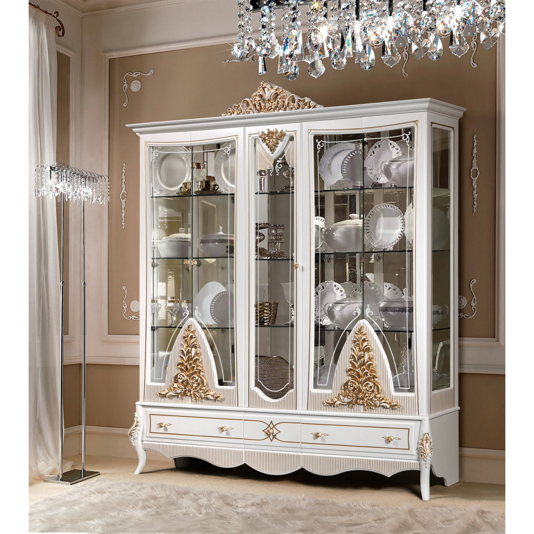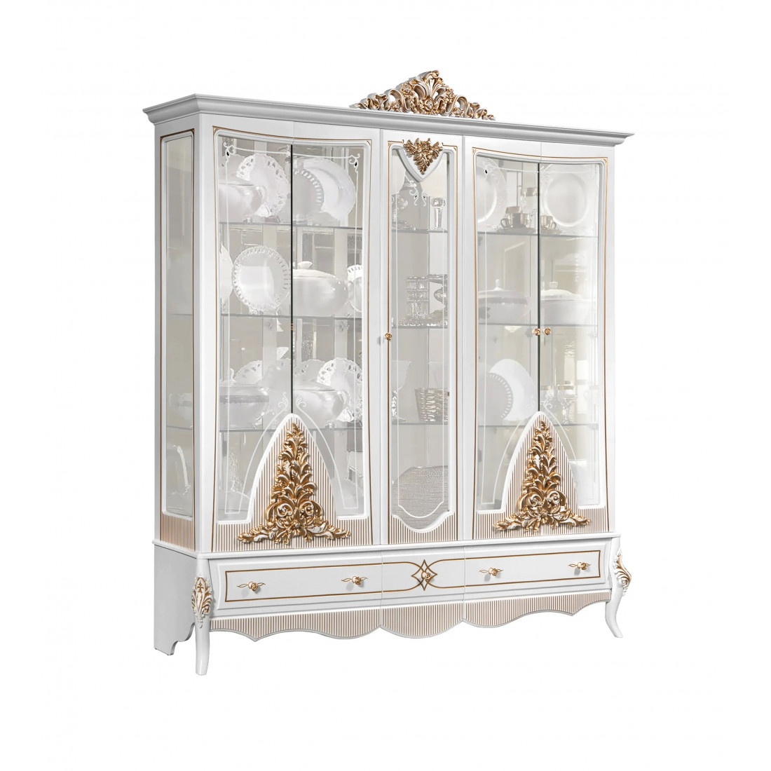Пятистворчатая витрина в гостиную Стелла (белый золото)