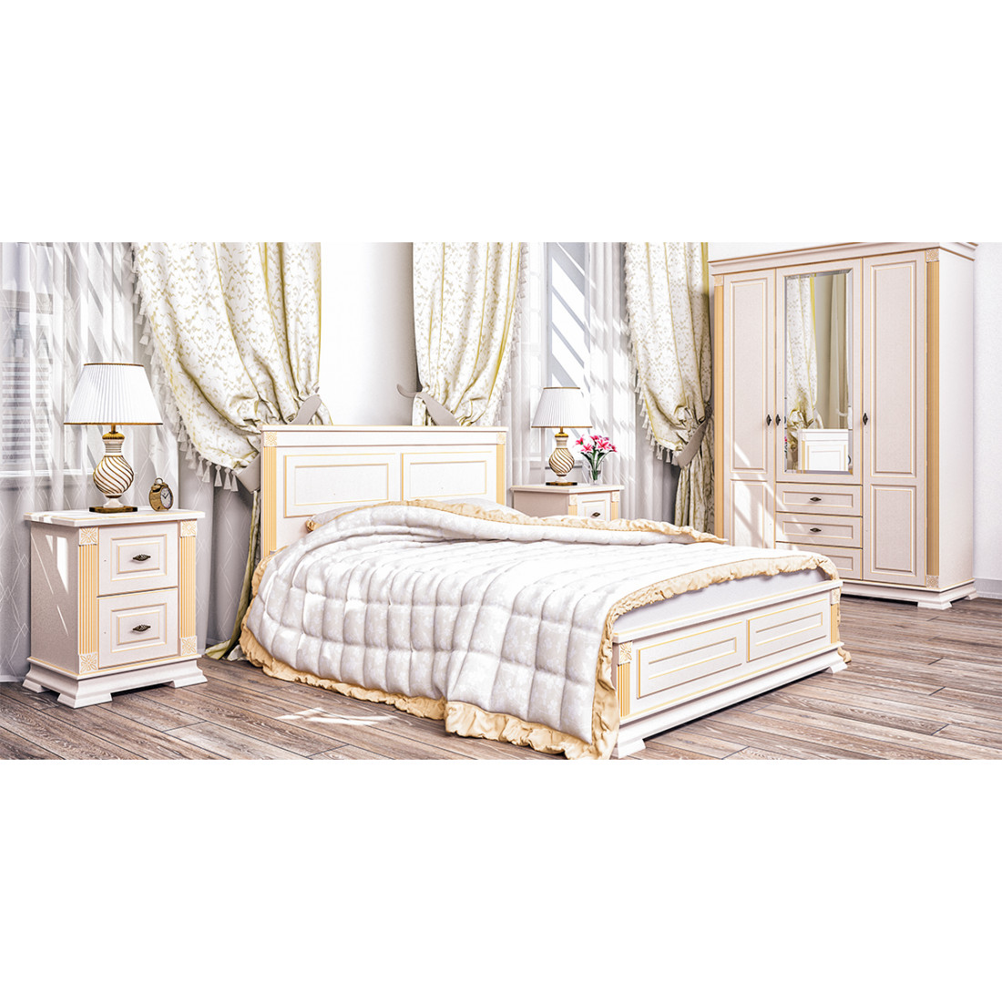 Роскошный трехстворчатый шкаф для одежды и белья МН-222-13 в спальню новой серии Афина (Мебель-Неман) выполнен в светлом кремовом оттенке с золотой патиной, является настоящим подарком производителя. Купить шкаф можно для комплекта полного спального гарнитура Афина с другими элементами серии или отдельно.