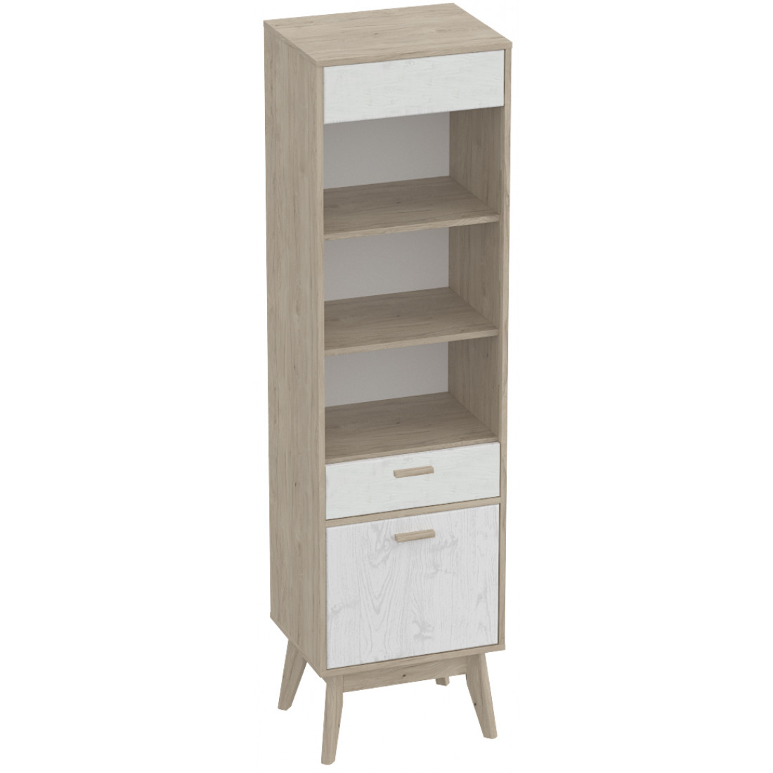 Ультратрендовый шкаф-витрина Калгари от Мебельград, выполненный в светлых тонах с элементами сдержанного стиля 60-х - высокие ножки, выраженная деревянная текстура натурального дуба, четкие формы. Вся мебель очень мобильная, компактная, вызывает чуство легкости и свободного пространства, при этом она функциональна.