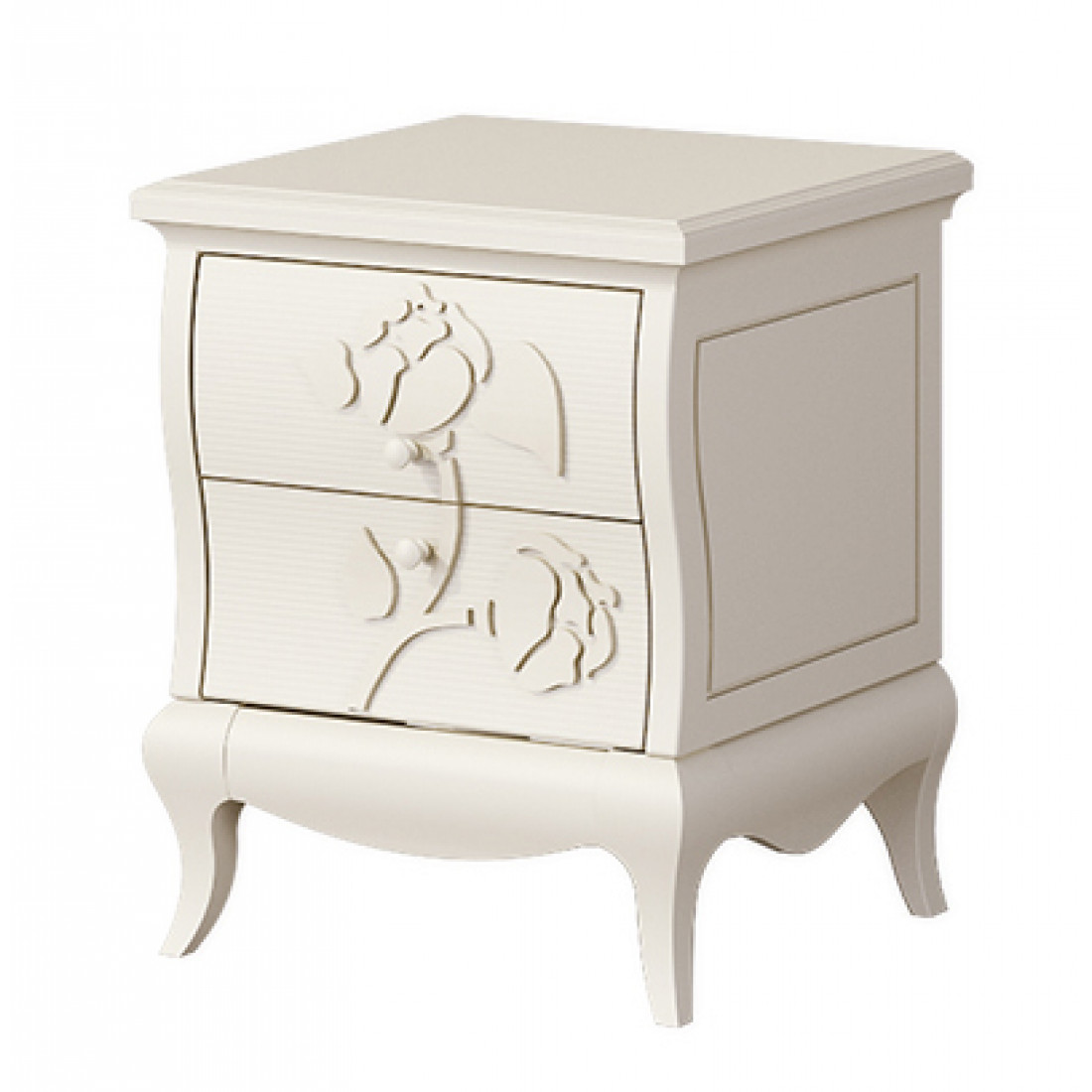 В изголовье кровати формы цвета слоновой кости также дополнены стилизованным 3D- рисунком. Благодаря продуманному общему оформлению, кровать невольно вызывает ассоциации с королевским ложем. Две практичные и одновременно с этим – стильно оформленные прикроватные тумбы добавляют спальному месту не только функциональности, но и создают целостный, законченный вид общей композиции.