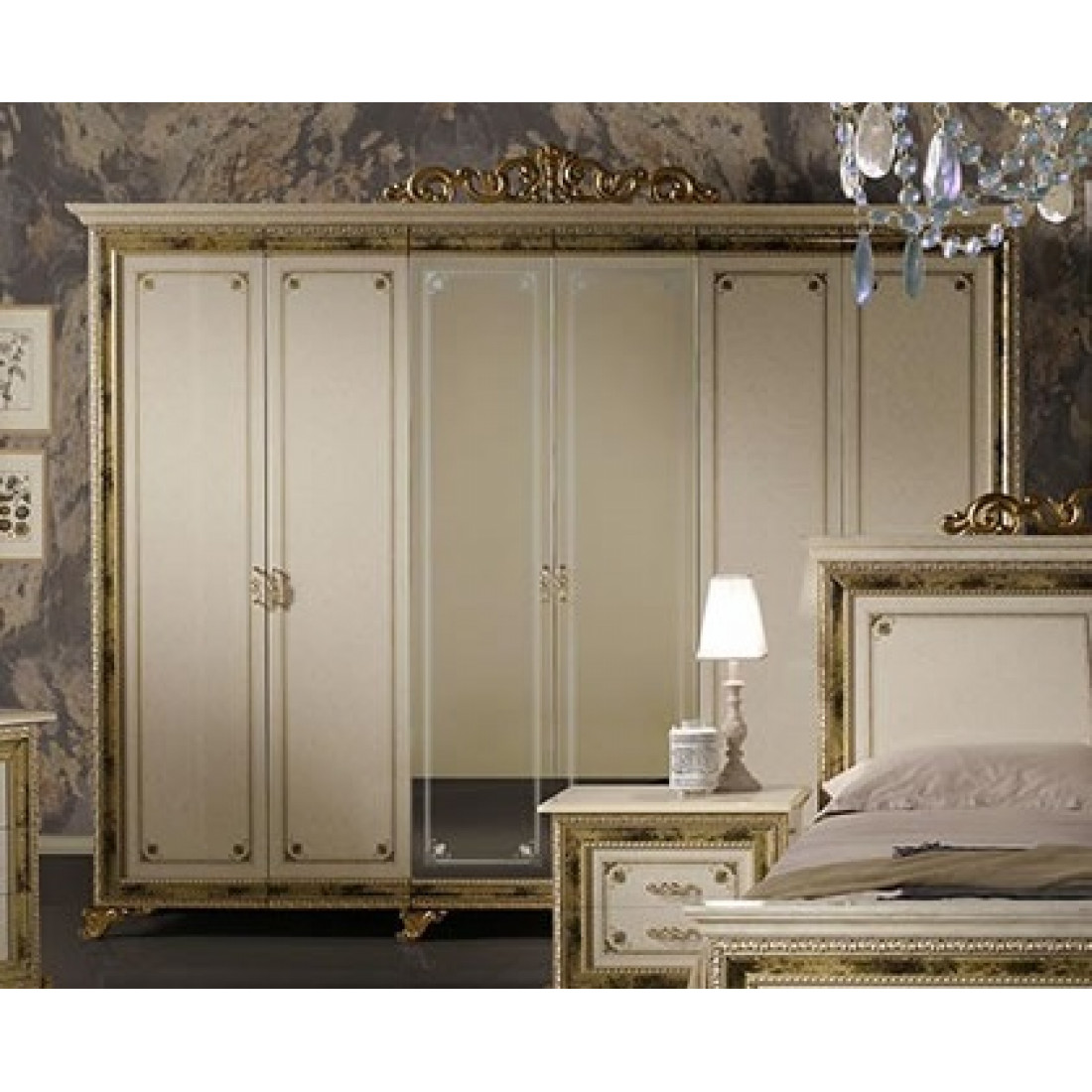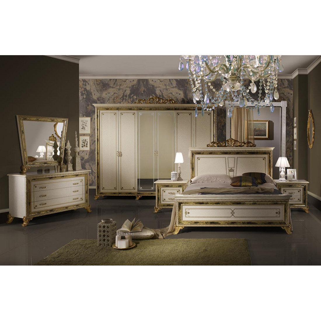Спальня Катя (беж) композиция 2 от Российской фабрики «ДИА мебель» выполнена в бежевом цвете с  глянцевым покрытием. Такой дизайн поможет вам почувствовать чувство расслабления и насладиться прекрасным крепким сном. Фасады спальни украшены резной, золотой вставкой. Большие просторные зеркала на шкафу и комоде помогут Вам сделать комнату легче и светлее. Классический стиль коллекции "Катя" по достоинству оценят самые изысканные ценители роскоши.