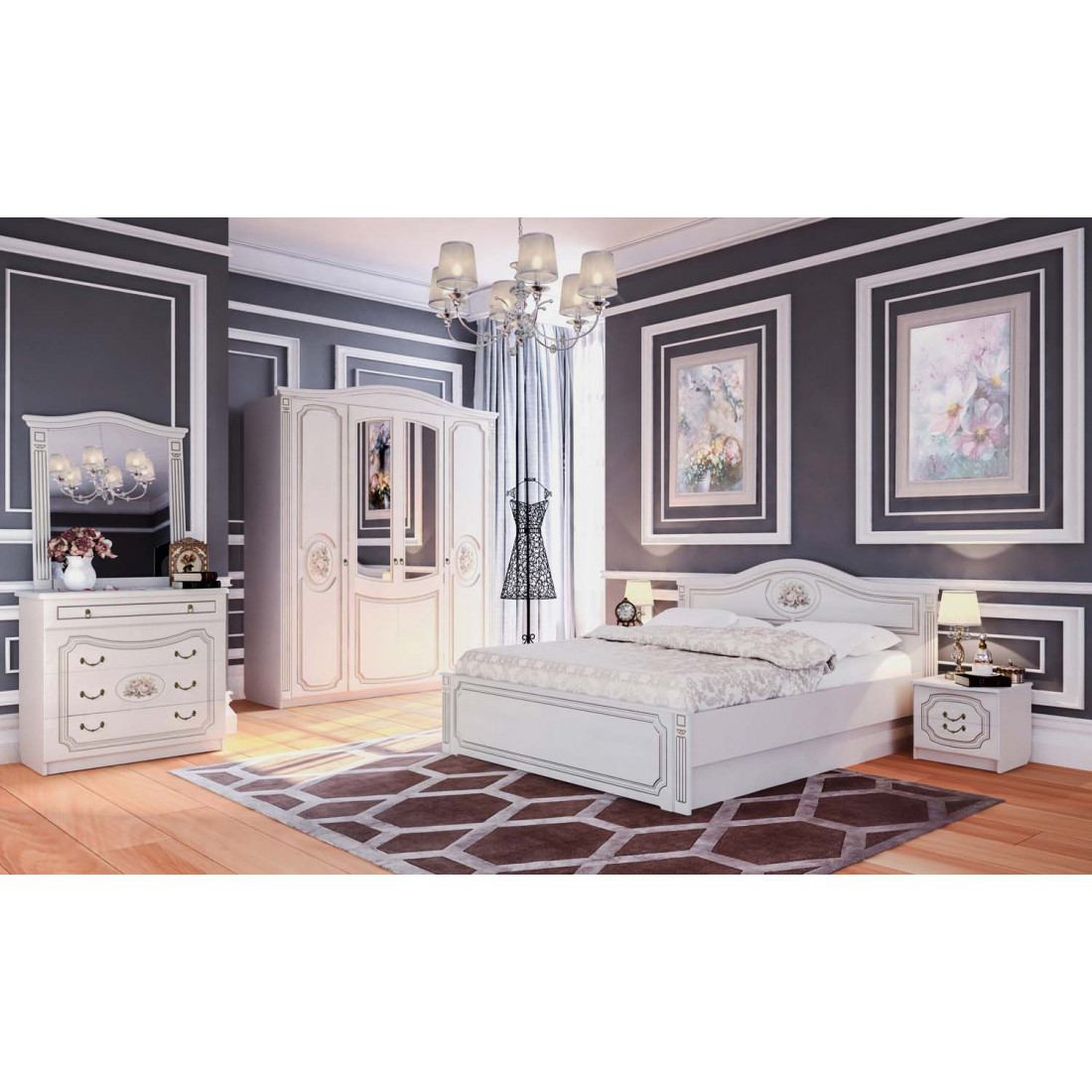 По-настоящему королевский спальный гарнитур Верона по достоинству оценят подлинные аристократы. Элементы обрамления, напоминающие корону, ручки под золото, Кофе10 /Капучино как цветовое решение создают ощущение роскоши и тонкого вкуса владельца данной спальни. Спальня Верона привлекательна не только внешне. В ней нет ничего лишнего, все продумано до тончайших мелочей. Большой четырехдверный шкаф с зеркалом вместит в себя солидный гардероб, комод и прикроватная тумба также достаточно вместительны. Спальный гарнитур Верона может быть скомплектован любыми модулями из коллекции по индивидуальному заказу клиента