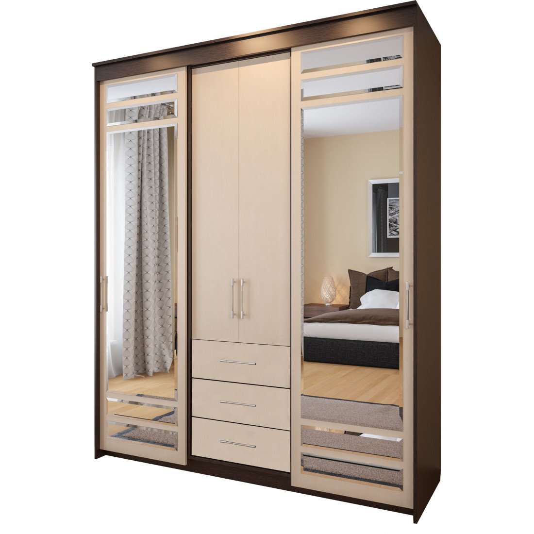 Хотите приобрети вместительный шкаф-купе, который сможет надежно хранить всю вашу одежду и обувь, при этом будем компактным и современным? Тогда обратите внимание на шкаф-купе ШК-05, который обладает всеми этими признаками. Он состоит из двух объемных отделений со штангами, в которых вашей одежде любой длины будет «удобно», нижних отделений для коробок с обувью, верхних полочек для головных уборов. Среднее отделение состоит из горизонтальных полочек и выдвижных ящиков. Оценить свой образ вы сможете в двух вертикальных зеркалах. Шкаф-купе ШК-05 может быть выполнен в трех модных цветовых решениях.