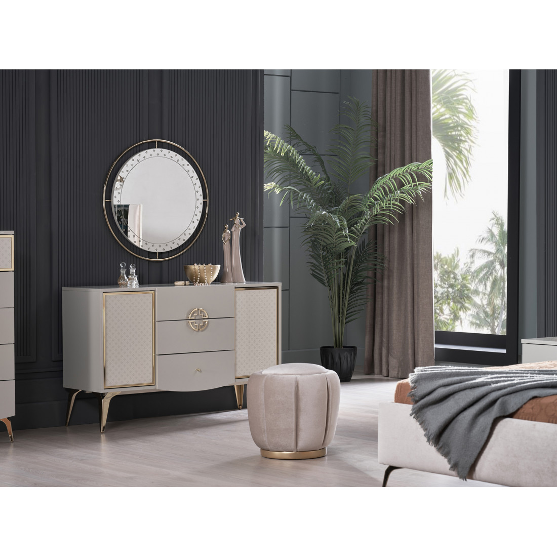 В туалетном столике Валеско используется стеклянный узор в стиле АРТ-ДЕКО и система открывания push-to-open