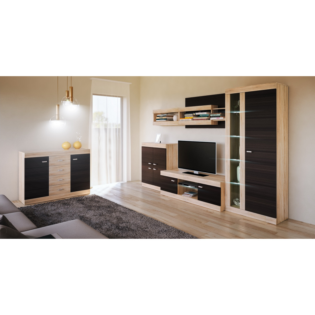 В этой коллекции дизайнеры сочетают два модных цвета - дуб сонома и дуб ниагара.