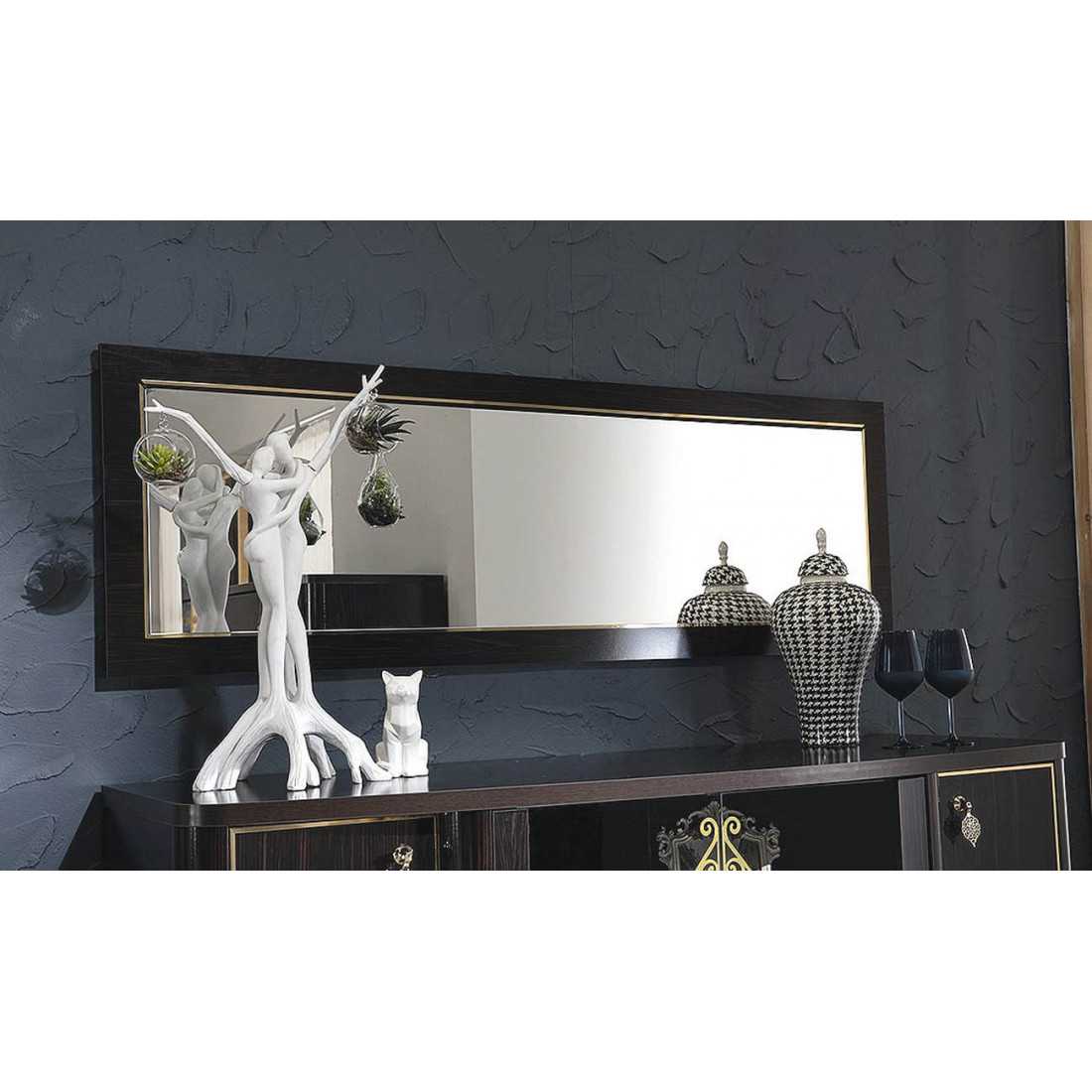 отделка золотым кантом по периметру зеркала;